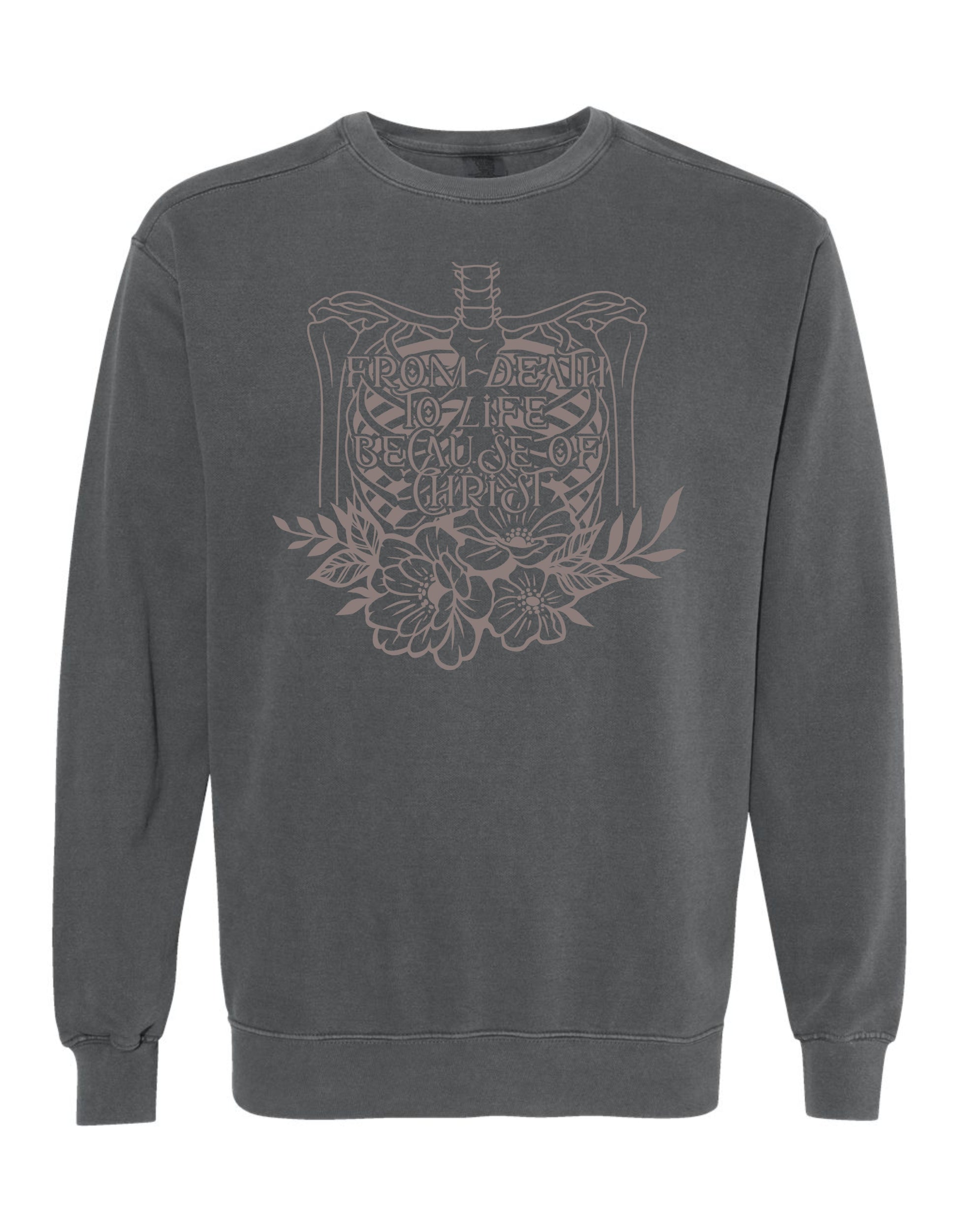 Comfort Colors crewneck sweatshirt, 100% pre-shrunk cotton.